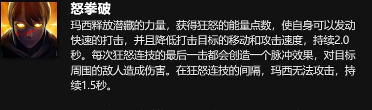 作为一个玛西玩家,我们还需要不断地提高自己的操作技巧。只有在熟练掌握玛西的技能和装备之后,才能够更好地为队友提供支持。
