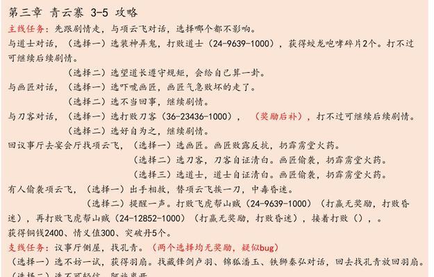任务攻略是通关必须掌握的技巧之一,本篇将为大家介绍如何顺利完成游戏中的各种任务。