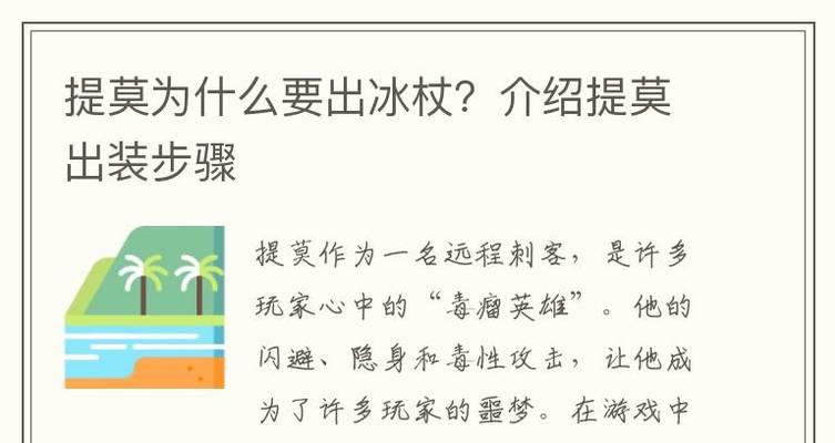 在游戏中,选择适合的装备对于提升英雄的实力至关重要。本文将以冰杖最强版本出装攻略为主题,为广大玩家介绍如何利用冰杖打造最强英雄,并分享一些关键装备的技巧,帮助玩家在游戏中取得更大的优势。