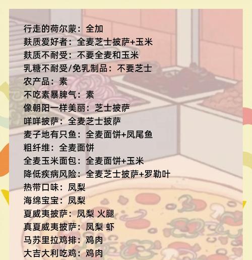 成为披萨游戏高手需要不断的练习和经验,本文提供的攻略指南将为玩家提供实用的技巧和策略,帮助他们在游戏中取得更好的成绩。通过理解游戏规则、掌握配料特性、提高反应速度等方面的指导,相信玩家能够在披萨游戏中获得更多乐趣和挑战!