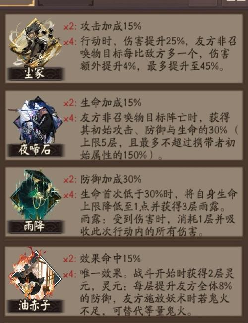 不同的御魂组合能够带来不同的效果。在选择御魂时,需要考虑不同御魂之间的搭配组合,从而打造出最适合自己的队伍。