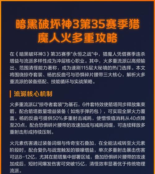 在《暗黑破坏神不朽》这款游戏中,猎魔人是一个非常强大的职业。为了使你的猎魔人角色更加强大,合理搭配装备是至关重要的。本文将为大家介绍如何搭配猎魔人装备,以提升角色的战斗能力和生存能力。
